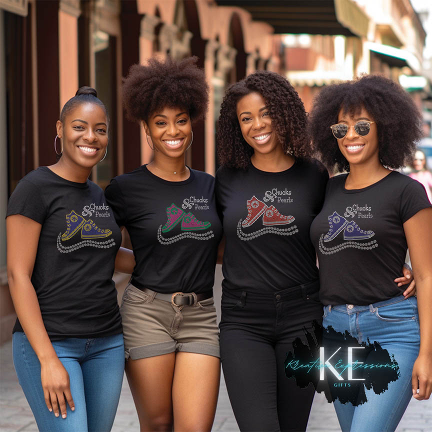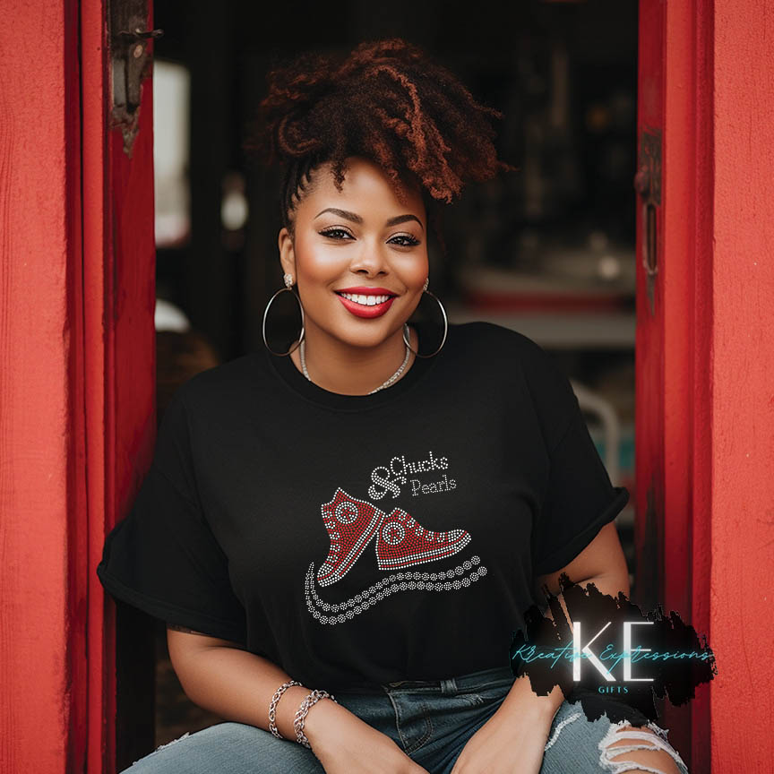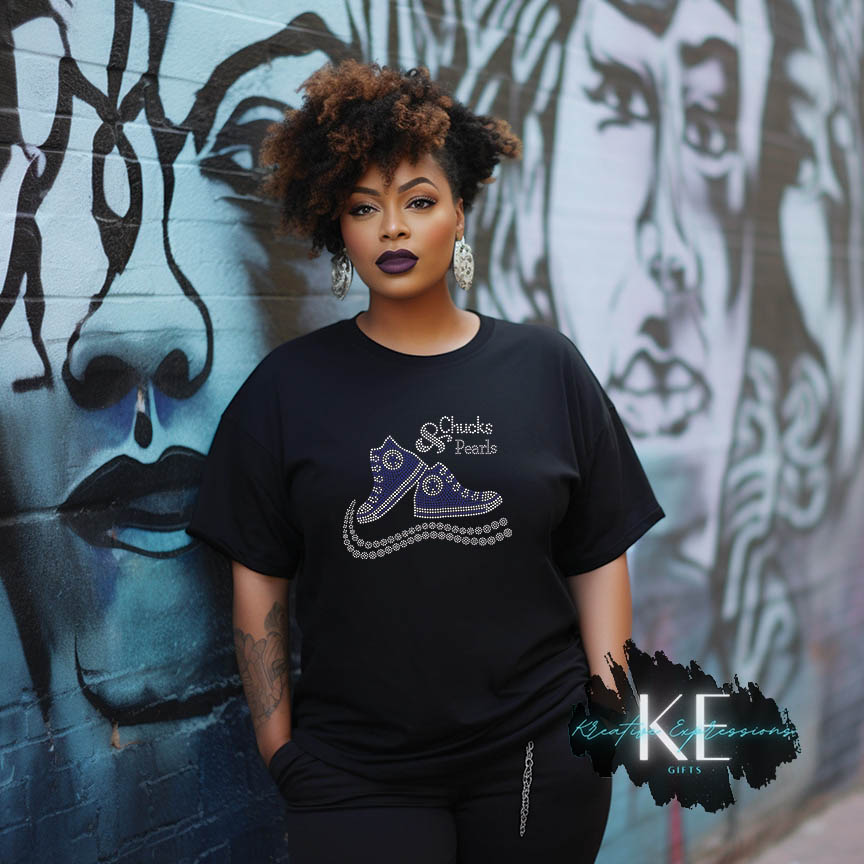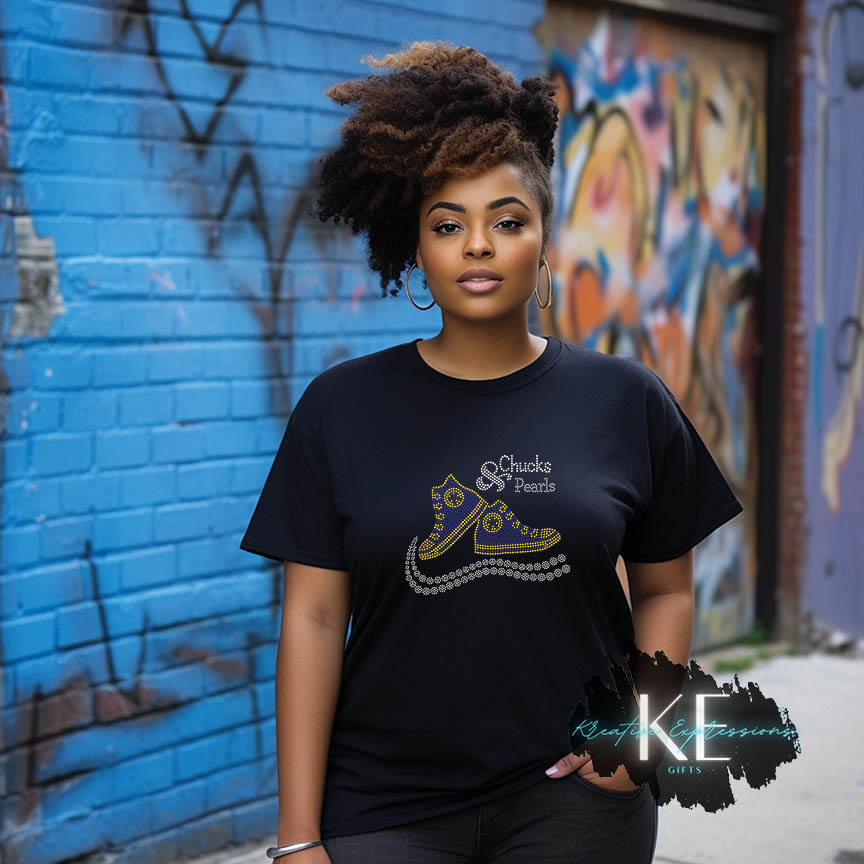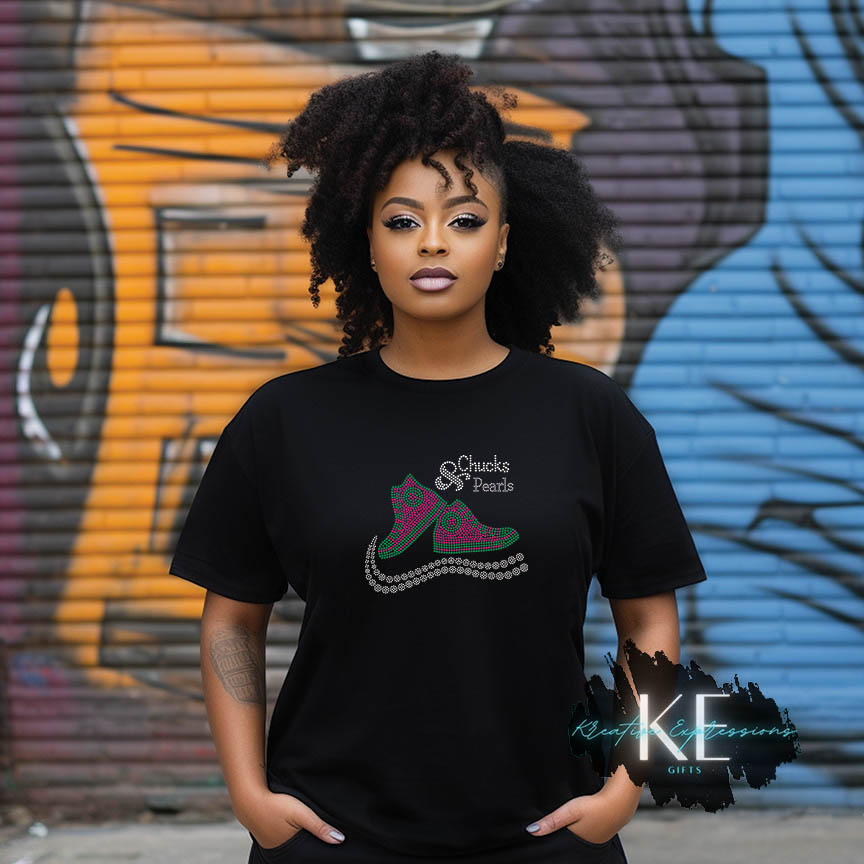 Chucks and Pearls Sorority Sneakers Bling Tee